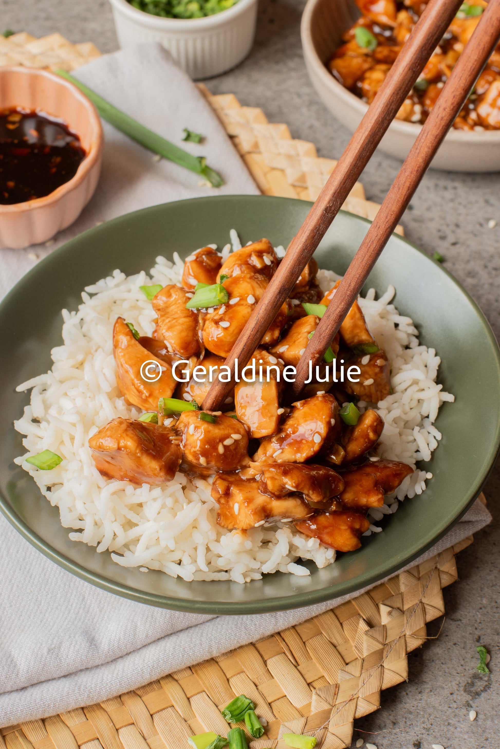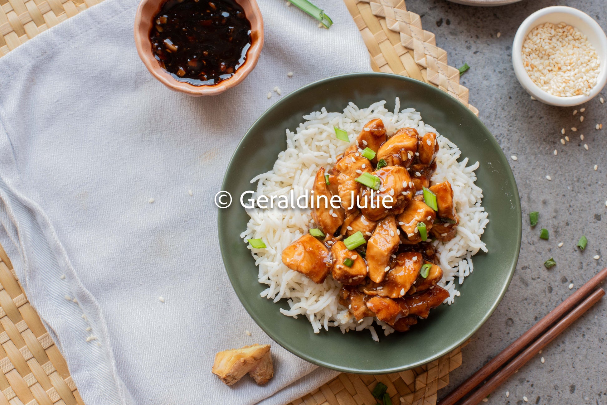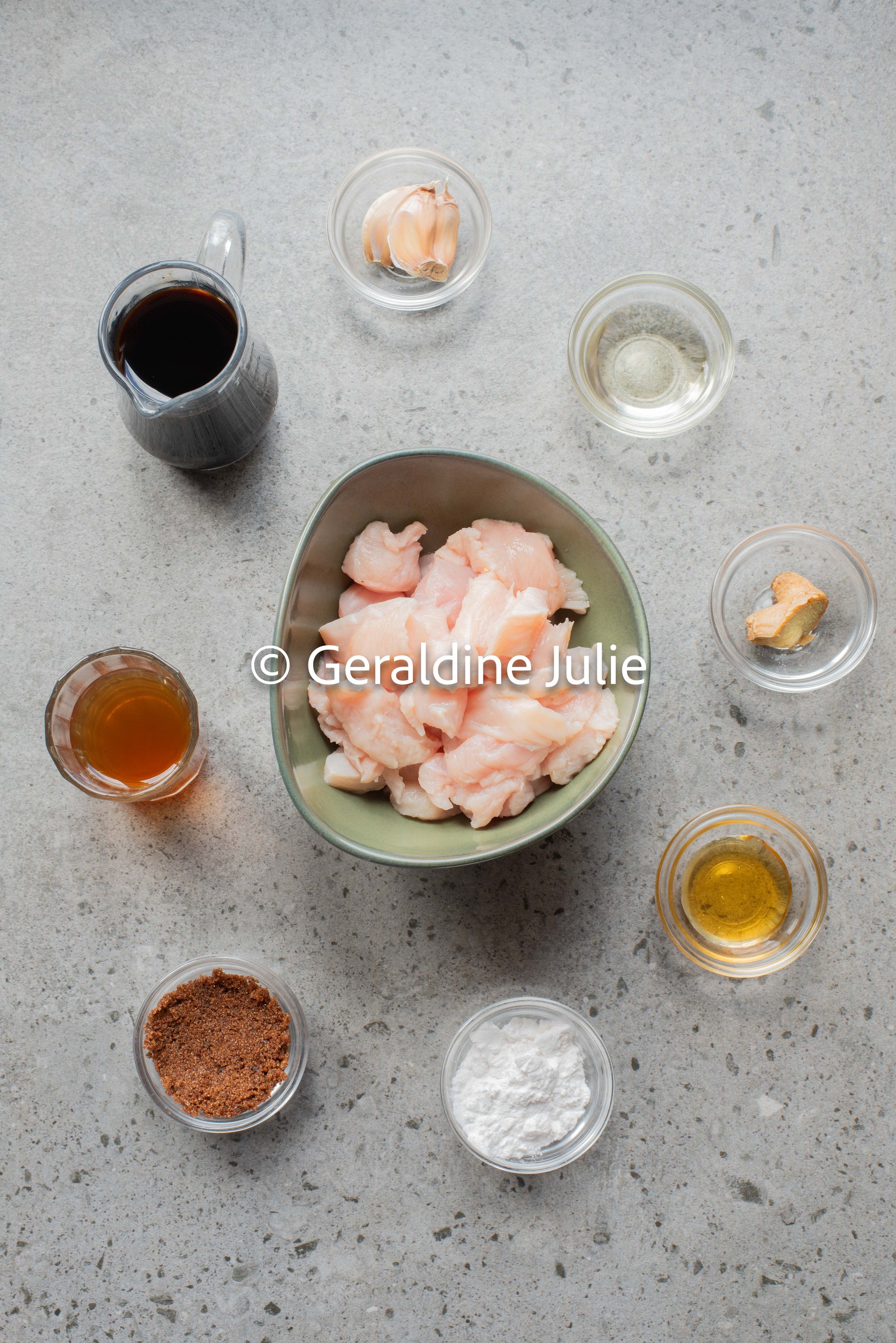 🧄 Ingredients include: Chicken, soy sauce, cornstarch, oil, mirin, brown sugar, honey, garlic, ginger.